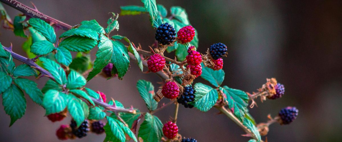 Raspberries and Blackberries are closely related and have similar growing requirements. Raspberries are more cold tolerant, and the fruit pulls free of the core, or receptacle, making it look hollow. Blackberries are less cold hardy (though they do fine in the Grand Valley), they tend to develop into larger plants, and the receptacle detaches when the fruit is picked. Red and Yellow Raspberries are erect growing plants and may not need support. Black and Purple Raspberries are trailing and require trellising. Most Blackberries are erect growing and may not need support, however, because of their size, trellising is usually recommended to fit them into most backyard situations. Boysenberries are trailing and require trellising.