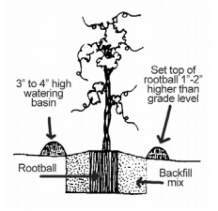 For plants that will be watered with lawn sprinklers, water as described above at planting time. Then remove the basin. Most of the plant’s day to day water needs will be met by the lawn watering. However, a deep soaking every month or two is recommended in addition to the lawn watering. In addition, during the winter a monthly deep soaking of all newly planted shrubs is a good idea. This should be done for the first two winters after planting.